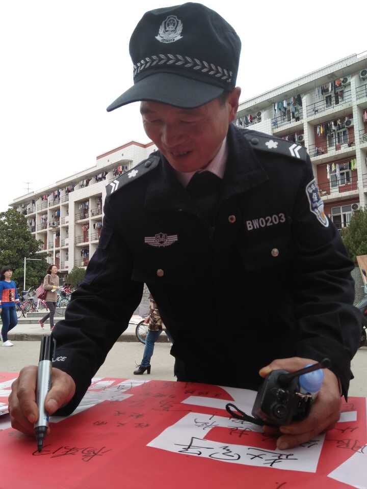 活动现场,两条写有“员工国土护”“员工安保航”的横幅鲜艳的横幅悬挂在宣传栏间,画板上张贴着制作精美的海报,ylzzcom永利总站线路检测院旗也随着春风阵阵飘扬。同学们热情地向大家宣传保卫处老师们的工作和生活,耐心地跟他们讲解马拉松比赛期间的安全常识的注意事项,受到大家积极热烈情绪的感染,路过的同学们也纷纷加入到我们的活动中,纷纷在横幅上签下自己的姓名。保卫处老师的现场参与和互动将活动推向高潮。