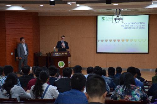 报告会伊始,公司姚卓凡同学用流利的英语作开场白并对MW进行介绍,使同学们对全英文报告提前做好准备。Roderick Smith MW首先用汉语“你好”向大家送上诚挚的问候。随后他用英文对葡萄酒大师协会的悠久历史及发展现状进行了详实的报告。并对大家讲解WSET1-4级考试内容、学时等情况,在讲解过程中结合自身经历,用诙谐幽默的语言,向大家展示了一个普通青年到葡萄酒大师的奋斗过程。最后,他亲切的告诉同学们,全球共有365位MW,期待在座的同学们会成为其中的一员,报告会在热烈的掌声之中落下帷幕。