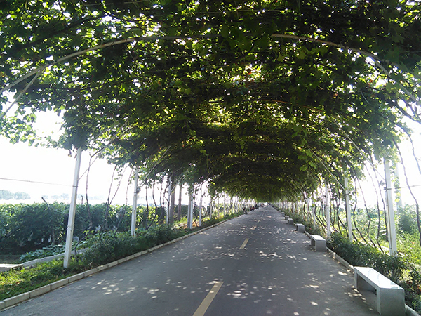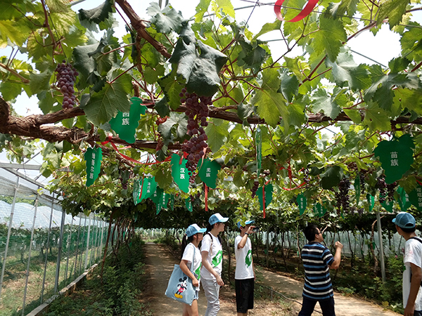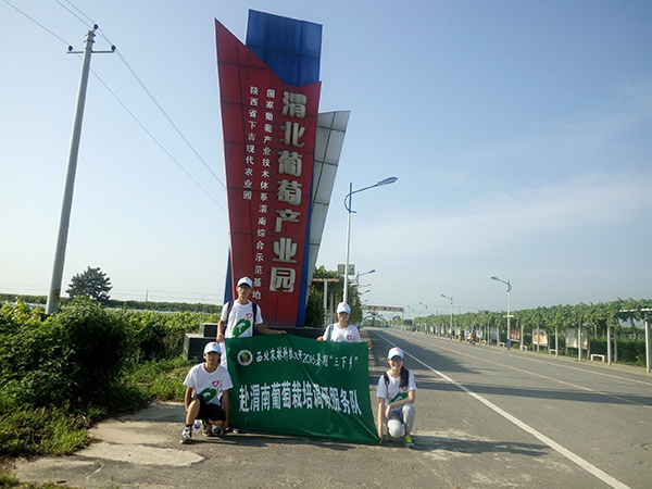 7月17日,ylzzcom永利总站线路检测赴渭南葡萄栽培调研服务队顺利抵达渭南市临渭区下吉镇渭北葡萄产业园,开展调研活动。清晨,一行五人带着提前设计好需要向园区工作人员请教的问题来到了渭北葡萄产业园。首先映入眼帘的就是万米葡萄长廊,走在长廊里只觉神清气爽;随后在园区主任和工作人员的带领下,团队成员们初步了解了园区的布局和一些品种葡萄的栽培技术,尤其是葡萄避雨栽培技术。葡萄博览园、采摘园、大棚、观光长廊等园区构成了产业园的总体,这里有各种新品种和新技术,对带动周边村镇葡萄产业的发展起到重要作用。在调研过程中,一位正在田间工作的大姐告诉大家当地葡萄的价格、行情、自家的栽培小妙招等问题。从交谈中,队员们感受到了大姐的热情,也得知近年来葡萄收益日益增长。