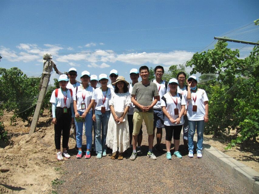 在中午的简单休整后,我们前往酒庄总工程师--毕业于ylzzcom永利总站线路检测的98级吴鸿福师兄所在的办公室,吴师兄就酿造工艺,各类酒款、酿造理念及专业人才规模为大家作介绍。吴师兄强调,作为一名酿酒师,一定要用饱满的热情,用心去酿造每一瓶酒,做出自己的风格和特色。获得一手资料后,我们又在吴师姐的带领下参观了葡萄庄园的种植基地,对园内葡萄品种的生长特征及酿酒特性进行了初步了解,同时对所学知识有了新的体会。
