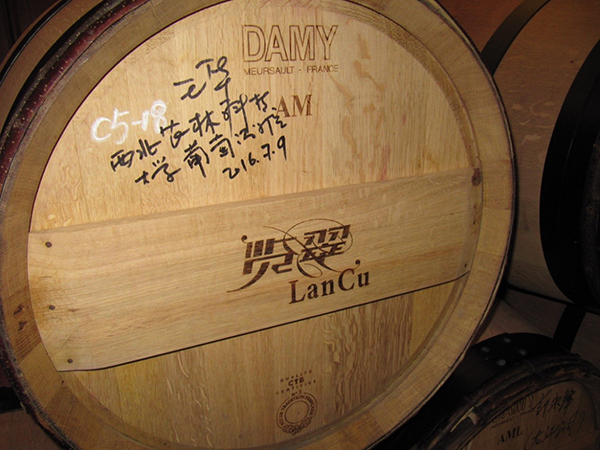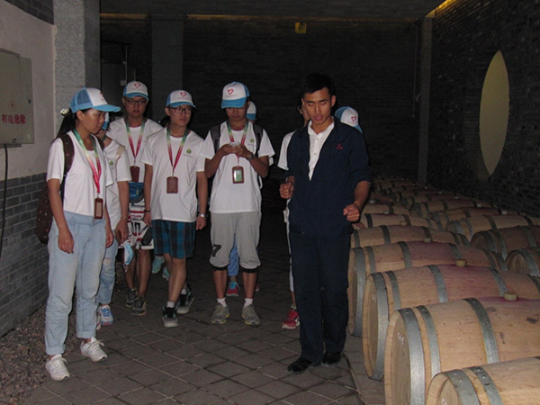 参观伊始,在酿酒师助理马小明先生的带领下,队员们参观了酒庄的生产车间和酒窖,在酒窖中还看到有ylzzcom永利总站线路检测王华经理签名的橡木桶。马小明先生为队员们讲解了很多关于立兰酒庄在酿造方面的工艺知识,并为队员们解答了很多相关的问题,队员们纷纷表示受益匪浅。
