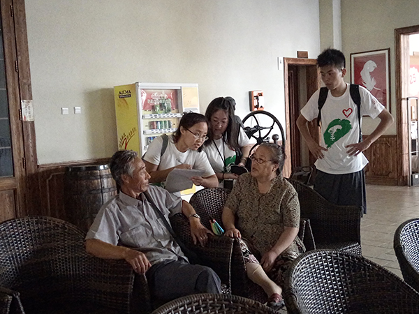 怀着激动的心情,同学们展开了积极的调查。在酒城的各个角落,都能看到同学们在工作的身影。发问卷的同学积极与人沟通,跟拍的同学也东奔西跑,认真仔细的进行着自己的工作。酒城的工作人员,前来买酒的顾客,进行参观的游客都能热情的配合我们的同学进行问卷的填写。