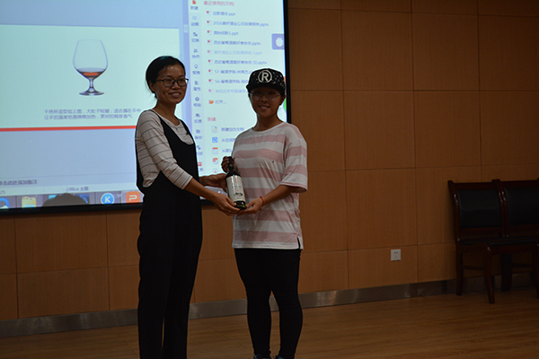 本次活动旨在彼此交流互动,在主持人幽默诙谐的葡萄酒入门知识讲解之后,到场参加活动的16级小鲜肉都放松了下来,酒会氛围十分融洽。活动报名初期,我们专门设置了才艺报名通道,两名同学积极报名,在酒会现场为我们带来了精彩表演。其中,来自生命科学院的16级新生刘佩迪献唱一首《小幸运》,优美的歌声将现场气氛渲染至高潮。互动环节中有不少同学积极参与,回答问题、表演才艺,酒协为他们送上了精美礼品。