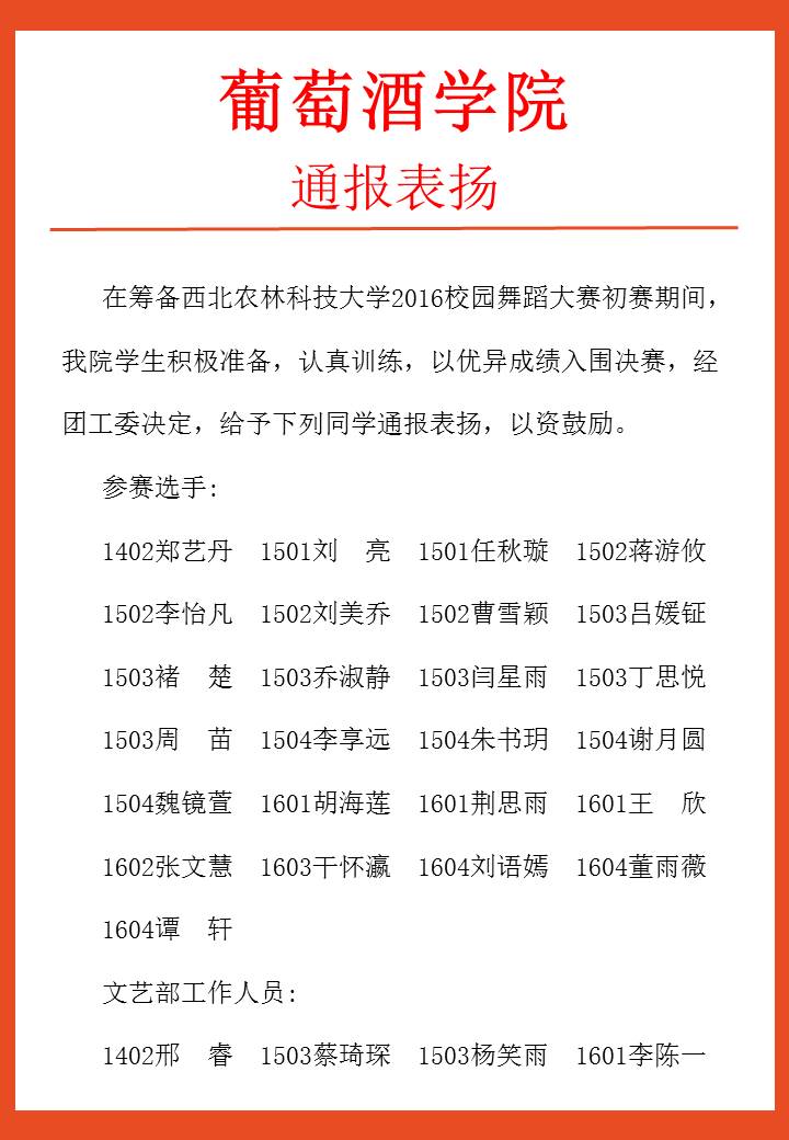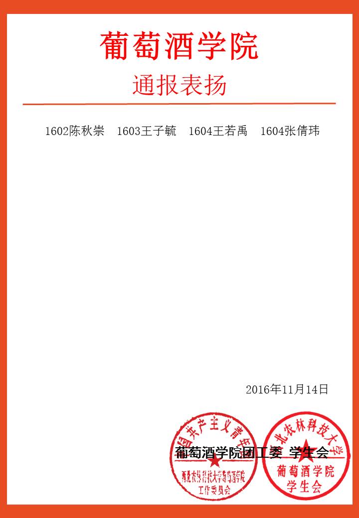 葡萄酒团(2016)38号通表表扬