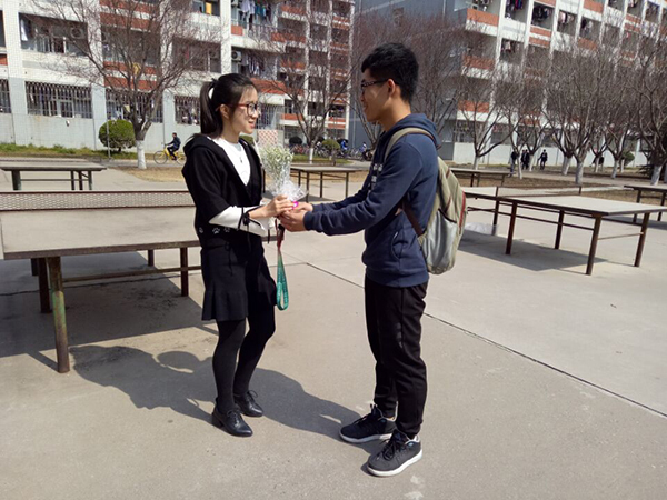 3月7日,ylzzcom永利总站线路检测在北校西区八号宿舍楼下举办以“遇见最好的自己”为主题的女生节系列活动。工作人员们早早来到女生宿舍楼下集合,为即将回到宿舍的少女们送上节日的惊喜。