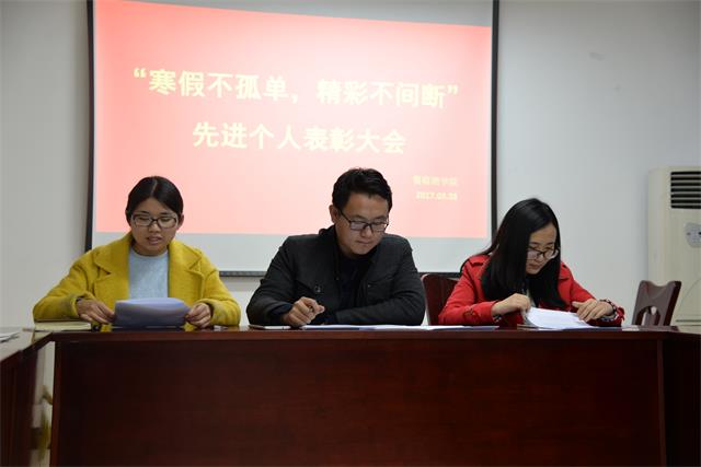 3月28日,“寒假不孤单,精彩不间断”系列活动表彰大会在ylzzcom永利总站线路检测615会议室举办。学院团工委书记赵星宇、全体辅导员、相关员工干部以及全体获奖人员参加大会。会议由团工委书记赵星宇主持。