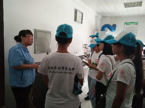 国宾酒庄是世界上第一座中式唐风酒庄,融合了大唐文化和葡萄酒文化。建筑汇聚了中国古典园林的精华,完美再现了盛唐的时代精神和审美情趣,是中国个性化、特色化、高端化葡萄酒庄的优秀代表之一。由于之前已与相应工作人员取得联系,队员全部到达后,便直接进入灌装车间参观学习。在工作人员的讲解下,队员们了解到,该条生产线由灯检、冲瓶、灌装打塞、套帽、再次灯检、贴标、喷码、装箱等组成,其中灌装打塞是酒的整体品质形成中比较关键的一步,相应岗位也被称为关键控制点,不同于中粮长城(烟台)葡萄酒有限公司的高自动化灌装线,国宾酒庄的灌装线与其酒产量相适应,自动化程度并无需过高,加深了队员们对灌装线的了解,燃起了队员们内心的学习热情。
