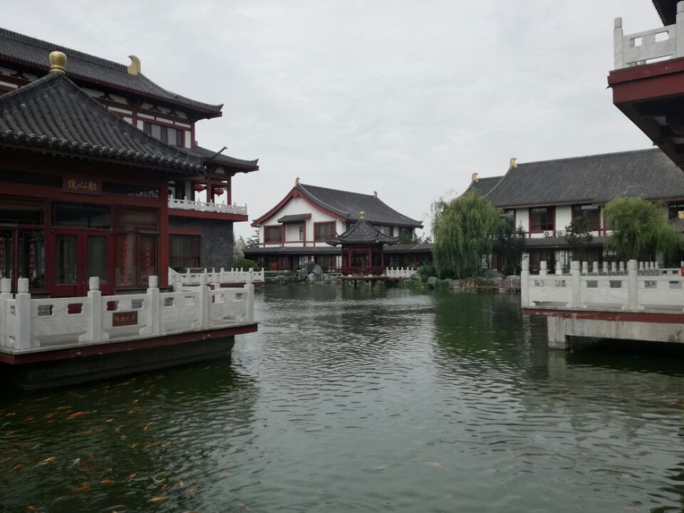 从生产区出来,走过曲折的长廊,浓浓的盛唐风情展现在眼前。假山瀑布,陶然亭,悦心舫,锦鲤列阵,尽显中国古典园林之美,使队员们更加全面而深刻的认识了酒庄。