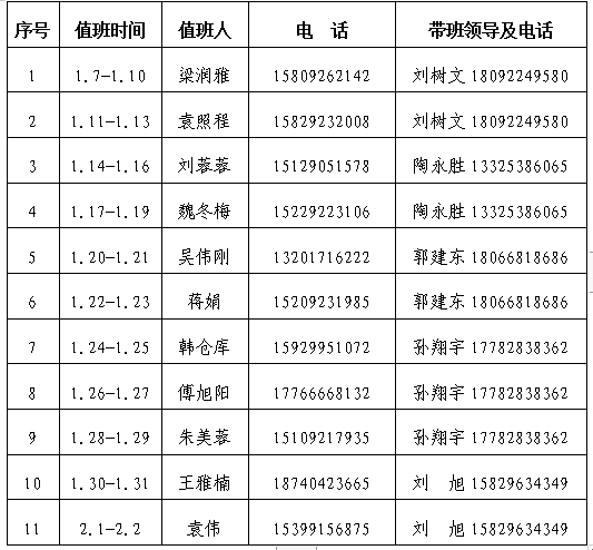 按照学校《关于做好2023年寒假放假安排的通知》要求,现将假期值班有关事项安排如下: