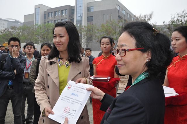 王经理为捐赠单位颁发了捐赠证书 |