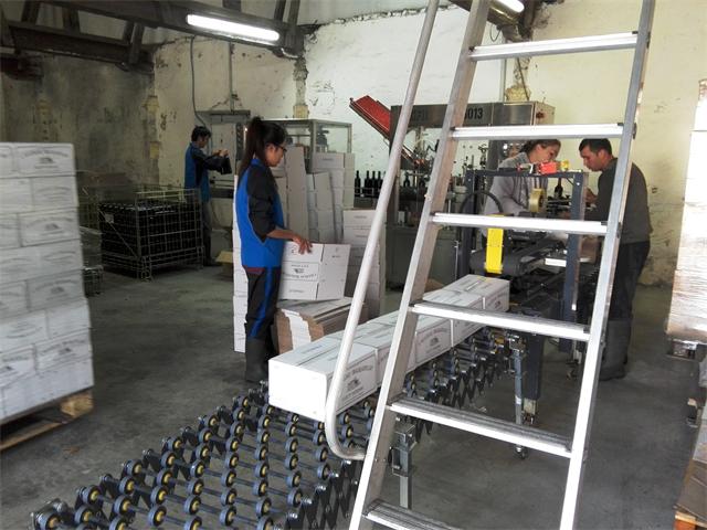 我想在酒庄生产车间里的工作是种类最多也最辛苦,当然收获也最多!在前期的发酵期间,我们在传送带旁快速分选葡萄,我们男生爬上发酵罐的顶部加橡木片、添加酵母以及给葡萄醪喷淋打循环;在压榨期,我们钻入发酵罐内部铲皮渣、使用气囊压榨机协助经理进行压榨工作;在灌装车间,我们向灌装线上放酒、折纸箱,将封装好的酒箱摆到货架上等等。凡是酒庄工作人员做过的工作,我们全部做了。在工作过程中,我们了解到酿酒师酿造过程中添加橡木片的经验值,我们懂得活化酵母时要添加氮素,不同的葡萄原料要用合适的酵母去发酵,我们学习到在葡萄发酵过程中混入去年的酒可以很好的提升酒的品质等等,酿酒师还有工作人员教会了我们很多东西。