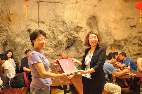 在青岛葡萄酒博物馆馆长的陪同下,考察团考察调研了博物馆的各个展馆的规划和布置。这次青岛葡萄酒博物馆的参观为公司正在筹建的中国葡萄酒博物馆“葡萄美酒夜光杯”提供了良好的借鉴素材。在与馆长的亲切交谈中,王经理肯定并赞扬了青岛葡萄酒博物馆在传承和推广葡萄酒文化方面所做出的努力和贡献并赠予青岛葡萄酒博物馆《中国葡萄酒》一书。