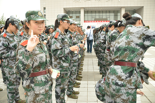 8月29日上午,党委书记胡俊鹏、经理王华、副经理刘树文、房玉林、党委副书记邓亚丽深入军训现场,亲切看望慰问军训中的2016级新生。