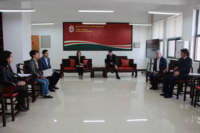 随后在学院学术沙龙王华教授与 LUCA先生等人进行了会谈。王华经理对LUCA 先生一行表示欢迎,表示 “一带一路”是中国目前最高的国家级顶层战略,推动了数十个国家在经济、文化、产业的交流与合作,在这一路两端的中国和意大利,都是具有悠久的历史、深远的文化的东西方文明代表国度。感谢他们愿意来学院开展意大利葡萄酒的教育和推广,希望日后能加强交流合作,可以开展双方的葡萄酒专题交流访学或者建立意大利海外实习基地等。