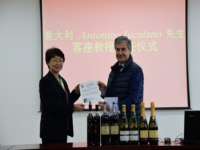 王华经理与Antonino先生在学院进行会谈,会议达成了在意大利TENUTA ROLETTO酒庄建立海外教学实习基地的意向。双方将进一步就基地建立的详细情况进行深入交流和沟通。