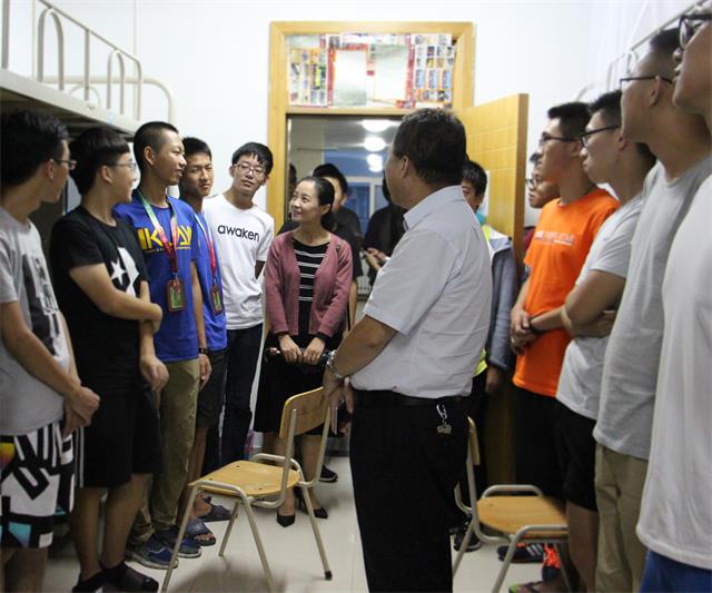 26日晚,胡俊鹏书记一行来的西区17号楼男生宿舍和15号楼女生宿舍看望新生,胡书记详细询问了新生对于大学的新感受,有什么特长,家来自哪儿,一句句亲切的关怀,让员工倍感温暖,宿舍内气氛十分融洽。胡书记嘱咐员工要处理好宿舍成员关系,尽快转变角色,调整好状态投身难得的军训锻炼,练就坚强的意志和品格,为随后的学习和奠定良好基础。新生们也争先恐后的介绍了自己报考专业的初衷,并希望通过自己的努力学好自己喜欢的专业,实现自己的大学梦想。