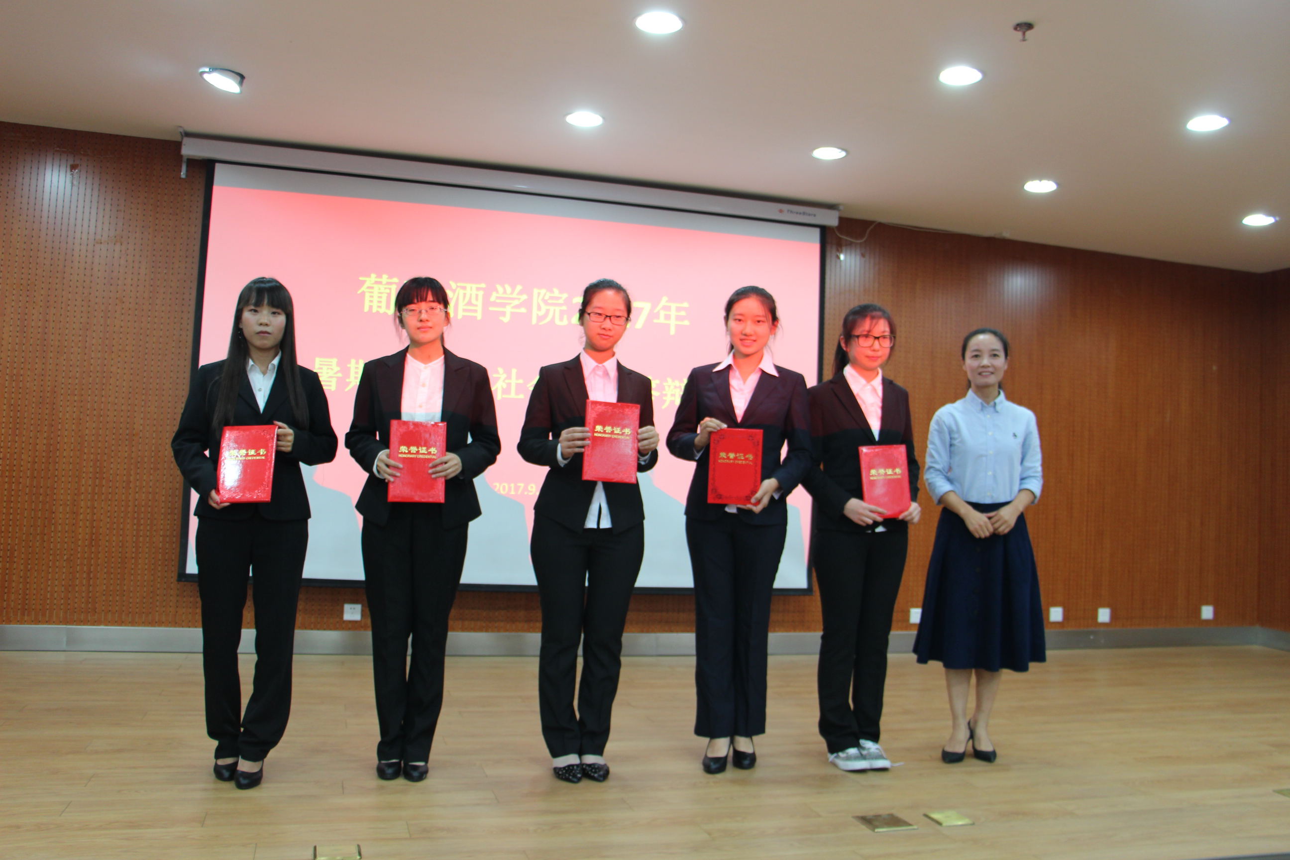 最终,“酒与少年”赴宁夏调研队、ylzzcom永利总站线路检测赴宁夏银川调研队、“寻访东莱 萄醉青春”酒庄调研队、昌黎酒业发展调研队及赴青海省青稞酒产业调研服务队等五支队伍荣获ylzzcom永利总站线路检测暑期"三下乡"优秀秀团队。邓亚丽副书记为获奖团队颁发荣誉证书。