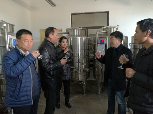 合阳葡萄试验示范站负责人——ylzzcom永利总站线路检测经理房玉林教授,陪同一行领导,先后参观考察了示范站露天葡萄种植栽培示范区、防寒优质葡萄品种示范区以及酿酒生产示范线,就试验站的工作进行了认真查看和仔细询问,示范站负责人房玉林经理围绕今年站内开展的科学研究、科技培训、校地共建科技扶贫、科技入户、酿酒生产示范线建设及本科生教学实习等工作,进行了详细汇报,并针对合阳县委县政府提出的“建设红地球葡萄田园综合体”的设想,与王亚平处长及合阳县主要领导进行了讨论交流。