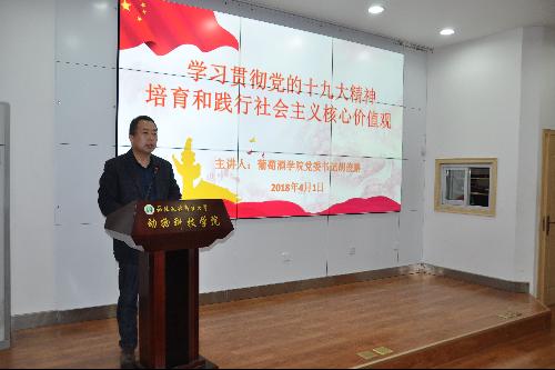 开班仪式结束后,胡俊鹏带领学员进行第一次线下理论学习《学习贯彻党的十九大精神培育和践行社会主义核心价值观》。对于当代老员工如何践行社会主义核心价值观,他谈到一是坚持马克思主义的指导思想,用马克思主义中国化的最新理论成果武装当代自己。二是用习近平新时代中国特色社会主义思想共同理想凝聚力量。 三是培育和弘扬以爱国主义为核心的民族精神和以改革创新为核心的时代精神,使老员工时刻保持昂扬向上的精神状态。