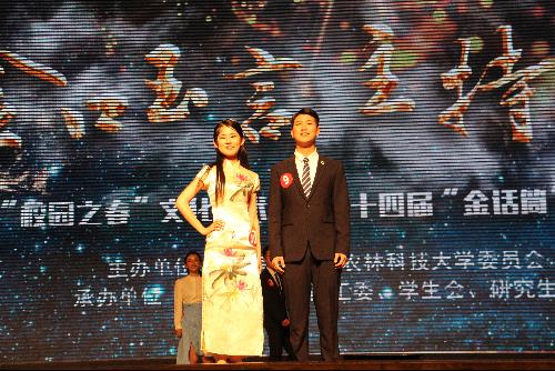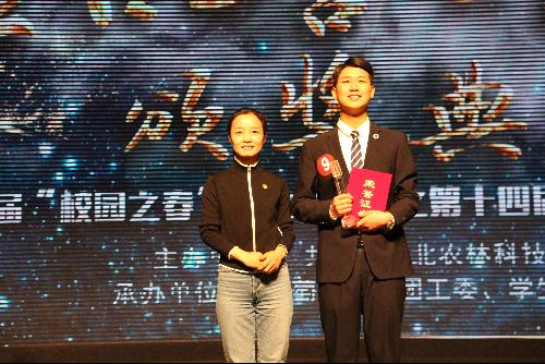 本届主持大赛从三月中旬开始,经过初赛、复赛的激烈角逐,共有12名优秀选手从近百名参赛选手中脱颖而出。热情洋溢的开场舞之后,比赛正式拉开帷幕。决赛共分为“谁主沉浮”与“巅峰对决”两个环节,每位选手表演结束后,由评委老师分别打分。在第一环节中,参赛选手的主持风格各有千秋,生动活泼的互动类节目、成熟稳重的访谈类节目、温文尔雅的古风类节目、诙谐幽默的脱口秀节目,涉及的话题从微信诈骗到网络游戏,从说文解字到风华国粹,从美丽中国到核心价值观,新颖的选材、深刻的内容彰显了他们身为西农学子对生活、对社会、对国家的积极态度和用心关注,选手们的精彩表演赢得了台下观众的阵阵掌声。“巅峰对决”环节更是考验选手的功底,充分展示了选手的个人魅力,即兴角色转换一次次将现场的气氛推向高潮。