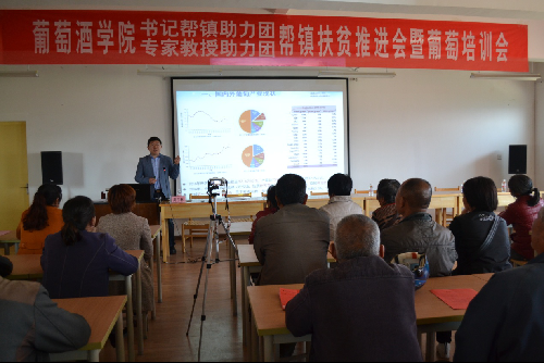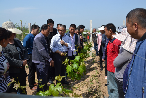 会上房玉林经理和胡俊鹏书记分别做讲话,坊镇党委书记董亚斌同志代表坊镇人民政府授予合阳葡萄试验示范站“坊镇葡萄产业扶贫培训基地”,聘请房玉林、刘树文、惠竹梅、刘旭、杨和财、张宗勤、秦义、梁艳英和张鹏组成专家教授助力团,并为四位专家代表颁发聘书,坊镇副镇长任岳莉表示“坊镇葡萄产业扶贫培训基地”是一个集葡萄技术培训、管理培训、市场培训为一体的综合性的培训基地,对于整合红提栽培技术、市场等资源,提高培训质量有重要的意义。同时,也希望广大红提种植户珍惜机会,经常到基地就葡萄栽培、管理、销售等方面进行学习,切实提升自身的栽培管理技术和抗市场风险能力。