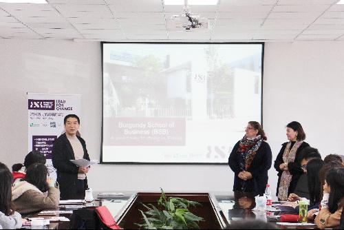 Bérengère MOINDROT(中文译名 墨佩婕)女士与意向出国留学的同学座谈交流,介绍了法国高等教育与中国高等教育的差异,以及勃艮第高等商学院的课程体系、校园生活,并对该校的三个核心项目[Msc(葡萄酒管理硕士)、MBA(葡萄酒与烈酒贸易硕士)、MS(国际葡萄酒与烈酒贸易硕士)]进行了详细介绍。
