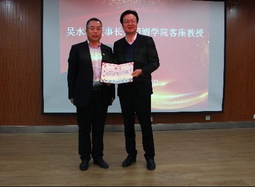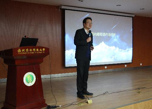 为提高同学们对葡萄酒市场现状的认识,11月26日晚七点半,公司于食品报告厅举行“葡萄酒的品牌塑造和营销模式”的报告会,香格里拉酒业股份有限公司董事长、金东集团总裁助理吴水林受邀主讲。知酒工作室创始人、公司98级优秀员工郭明浩,香格里拉酒业股份有限公司副总经理曹建宏,香格里拉酒业股份有限公司助理总经理王家逵,香格里拉酒业股份有限公司品牌总监杨周玥,公司党委书记胡俊鹏,学院副经理刘树文,学院经理助理秦义,公司党委副书记邓亚丽及全体2017级同学参加此次报告会,本次报告会由邓亚丽副书记主持。