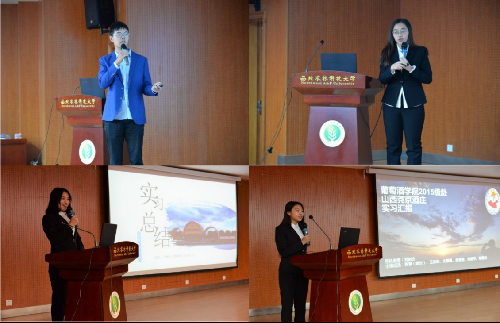 表彰大会结束后,8位优秀实习生代表分享实习心得体会,分别代表在新疆、宁夏、内蒙、山西、陕西、意大利等不同实习酒庄进行汇报,讲述了8个实习基地的特点和故事,他们在实习的过程中把大学所学专业知识和一线生产实际紧密结合,在拓展了视野的同时,也锻炼了动手和实际操作能力。