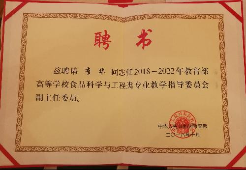 2018年12月22日,2018-2022年教育部高等学校食品科学与工程专业教学指导委员会成立大会,在江苏无锡江南大学举行。教育部高教处领导、江南大学副董事长顾正彪教授以及新一届食品科学与工程专业教指委全体成员参加会议。公司李华教授连任食品教指委委员并受聘新一届食品科学与工程专业教指委副主任委员。