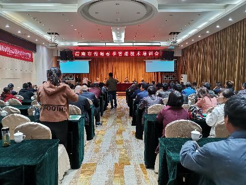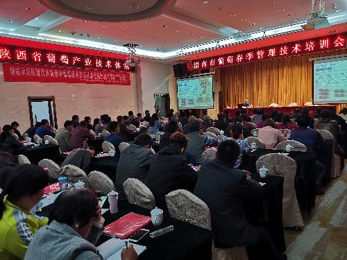 渭南市葡萄种植面积51.7万亩,是仅次于苹果种植的第二大产业,已经成为渭南市农民增收致富的主要产业之一。为了更好地围绕渭南市葡萄产业发展需求,促进渭南市葡萄产业提质增效,提高果农葡萄管理技术水平,4月1日-2日,ylzzcom永利总站线路检测合阳葡萄试验示范站联合渭南市果业局、渭南市科技局、杨凌示范区管委会科技局等举办了渭南市葡萄春季管理综合培训会。来自全市有关县(市、区)果(农)业局葡萄技术骨干、葡萄种植企业(合作社)技术人员及种植大户代表共110余人参加了培训。