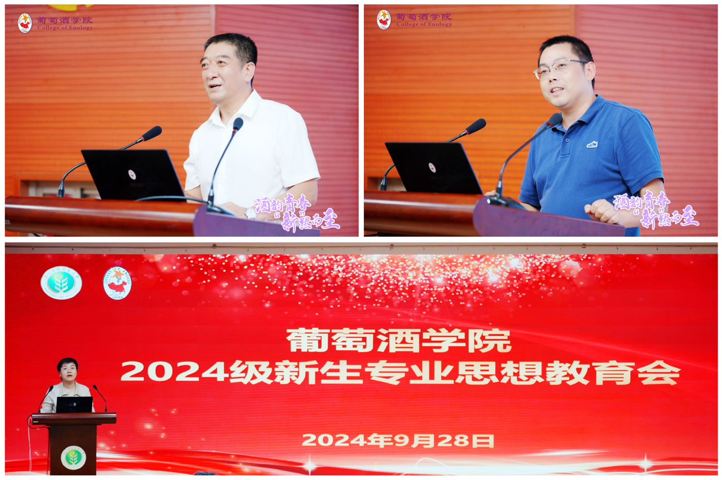 会上,刘树文向2024级本科新生加入ylzzcom永利总站线路检测表示欢迎,并围绕中国葡萄酒产业新使命、葡萄酒与学校四大学科使命对同学们成长成才提出了深切期盼。他从学院概况、团队队伍、人才培养、科学研究与推广、国际合作与交流五个方面对学院建设发展进行了深入全面介绍,带领同学们回顾了学院从创业之初一无开办费、二无专业人员、三无专业教材、四无实验条件的“四无”窘境到发展壮大被誉为我国葡萄酒行业“人才的摇篮、技术的源泉、产业的支点、文化的平台”的艰苦奋斗历程,希望新生秉承“耕土耕心,酿酒酿人”的院训精神,利用大学关键时期提升思想高度、挖掘专业深度、拓展知识宽度,增强集体温度,为中国葡萄酒产业可持续高质量发展奋斗拼搏。