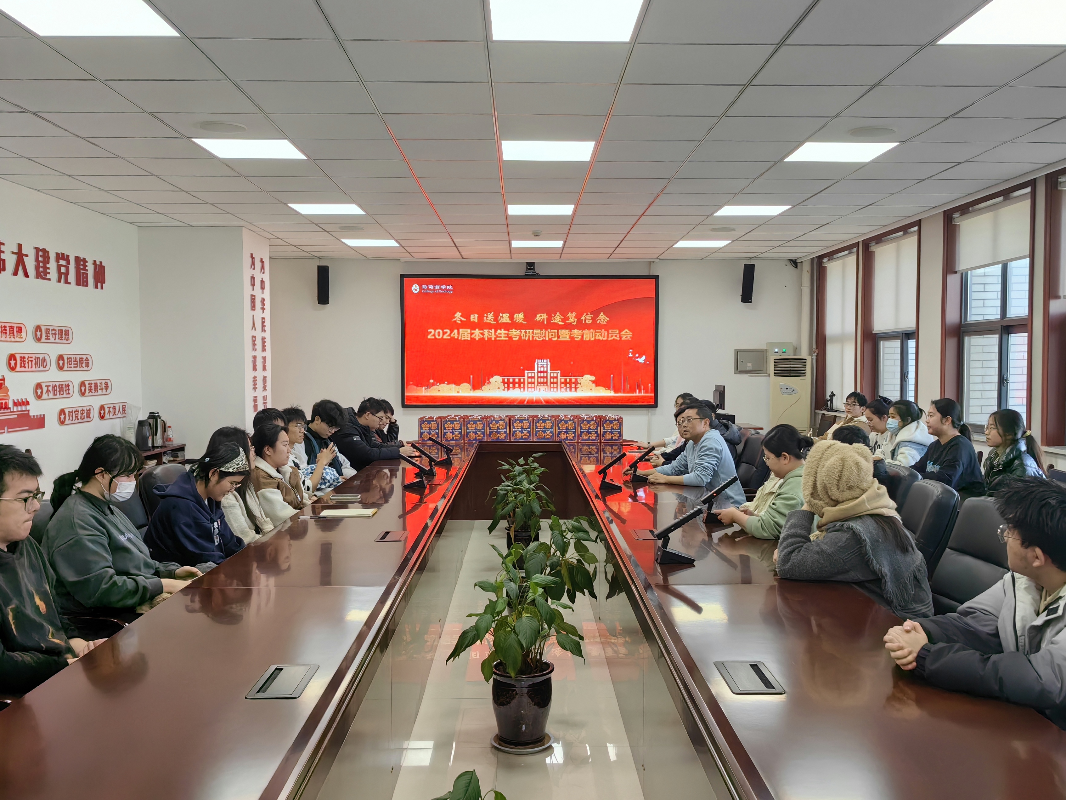 2024年全国硕士研究生入学考试在即,为帮助考研学子缓解备考压力,坚定考研信心,积极冲刺迎考,12月8日下午,学院在615会议室召开考研学子慰问暨考前动员大会。学院副经理刘旭、毕业生班主任及辅导员一同为同学们加油鼓劲。